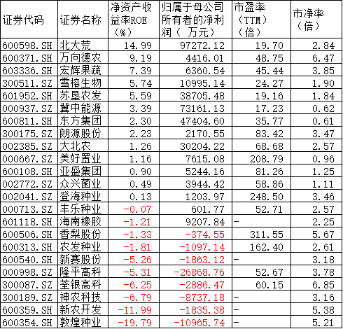 從業(yè)績的角度來看,農(nóng)業(yè)種植板塊則表現(xiàn)一般,23家上市公司中只有15家公司去年前三季度盈利,凈資產(chǎn)收益率在5%以上的僅有北大荒(14.99%)、萬向德農(nóng)(9.19%)、宏輝果蔬(7.39%)、雪榕生物(5.74%)、蘇墾農(nóng)發(fā)(5.59%)等5家公司。2019年年報(bào)業(yè)績預(yù)告方面則只有眾興菌業(yè)一家公司業(yè)績預(yù)減,其他公司均未披露業(yè)績預(yù)告。