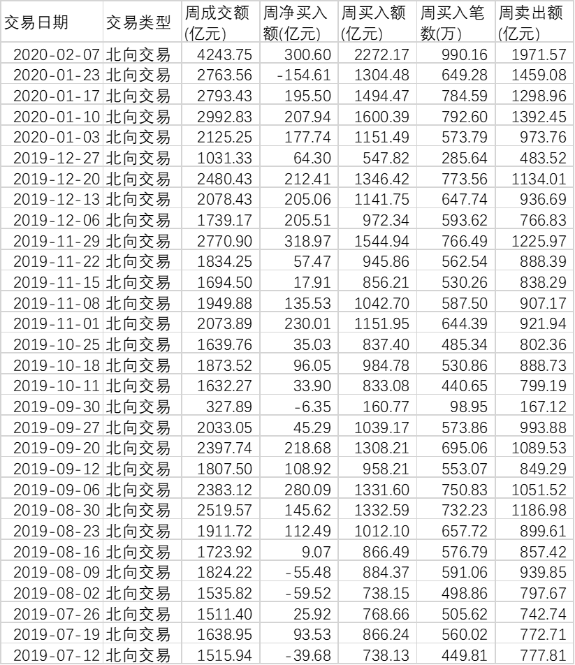 春節(jié)后第一個交易周A股市場經(jīng)歷大幅跳空回落和連續(xù)的反彈修復,盡管上證指數(shù)本周僅回落了3.38%,但是其間市場情緒的反復變化卻令人神經(jīng)緊繃。在這一背景下,北上資金卻大舉進場,周一下跌之時就大手筆掃貨,凈買入額達181.89億元,周二與周四也在不斷買入,本周北上資金合計凈買入額達300.62億元。本周的凈買入額創(chuàng)去年12月份以來階段新高,“聰明錢”的勇于“抄底”令投資者大開眼界。