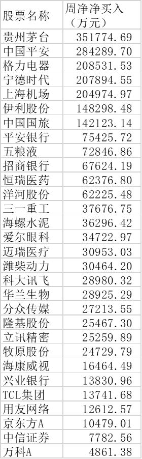 既然看好,那么北上資金春節(jié)后都買了些什么?滬深股通十大交易活躍股數(shù)據(jù)顯示,在本周北上資金呈凈買入的活躍股有30只,凈買入額最高的公司是貴州茅臺,周凈買入額達35.18億元,其次是中國平安,周凈買入額達28.43億元,格力電器、寧德時代、上海機場、伊利股份、中國國旅緊隨其后,周凈買入額均在10億元之上。上述7只個股北上資金周凈買入額合計達154.79億元。