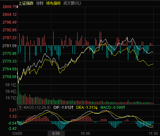 3月26日,滬深兩市低開后震蕩上揚(yáng),一度翻紅,個(gè)股方面,跌多漲少,有1035只個(gè)股上漲,占交易中個(gè)股總數(shù)的27.33%,下跌股2652只。截至上午收盤,上證指數(shù)報(bào)2776.64點(diǎn),漲-0.18%,成交額1490.1億元;深證成指報(bào)10211.71點(diǎn),漲-0.29%,成交額2409.4億元;創(chuàng)業(yè)板指報(bào)1933.58點(diǎn),漲-0.22%。