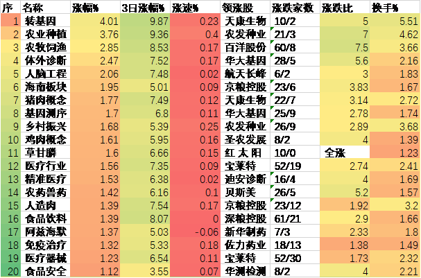 從板塊走勢來看,截至早盤收盤,有57類板塊上漲,占比16.81%,轉(zhuǎn)基因(4.01%)、農(nóng)業(yè)種植(3.76%)、農(nóng)牧飼漁(2.85%)等板塊居前3位;有282類板塊下跌,電信運(yùn)營(-2.72%)、輸配電氣(-2.29%)、智能電網(wǎng)(-2.1%)等板塊居前3位。