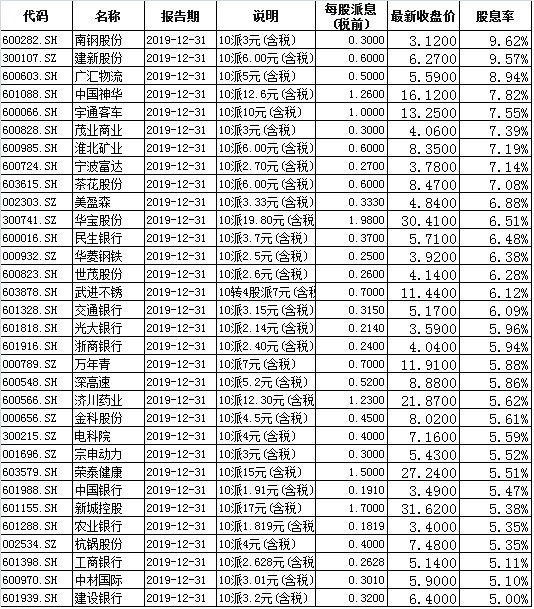 表:股息率超5%的個股一覽