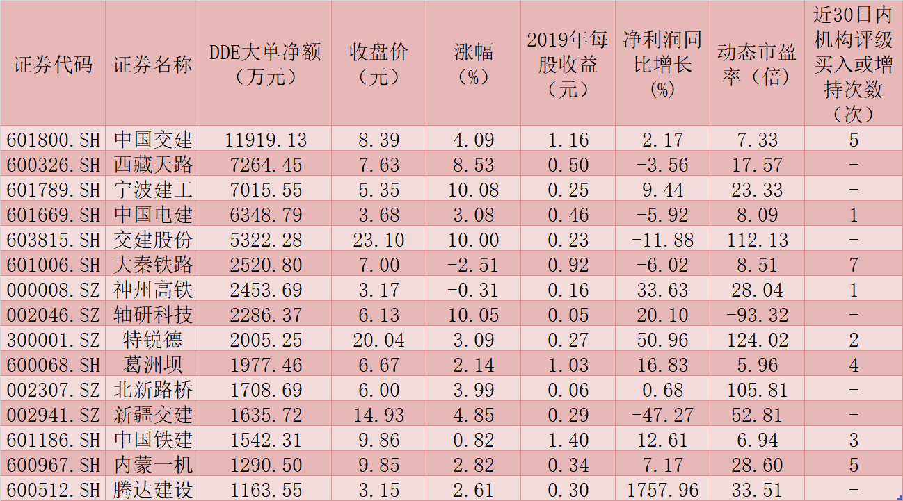 進(jìn)一步統(tǒng)計發(fā)現(xiàn),上述被大單資金追捧的37只個股中,有16只個股近30日內(nèi)獲得機(jī)構(gòu)給予“買入”或“增持”等看好評級。其中,大秦鐵路、隧道股份、中國交建、內(nèi)蒙一機(jī)、葛洲壩、七一二、中國鐵建和安徽建工等8只個股近期均受到3家以上機(jī)構(gòu)扎堆推薦,后市表現(xiàn)值得關(guān)注。