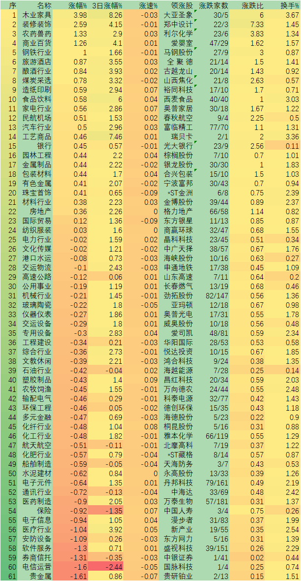 表:周三各行業(yè)市場表現(xiàn)一覽