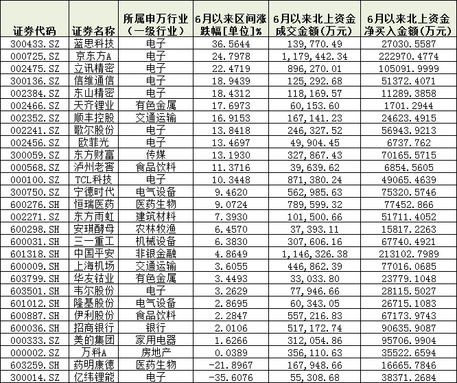表:6月以來(lái)北上資金凈買(mǎi)入的28只個(gè)股