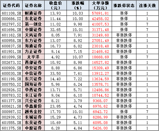 作為多頭力量的主陣地,券商股吸金能力不容小覷。7月8日,45.96億元大單跑步進(jìn)場(chǎng)搶籌30只券商股,財(cái)通證券、東北證券、第一創(chuàng)業(yè)、中銀證券、天風(fēng)證券等5只個(gè)股大單資金凈流入均在3億元以上,合計(jì)吸金就達(dá)20.38億元。