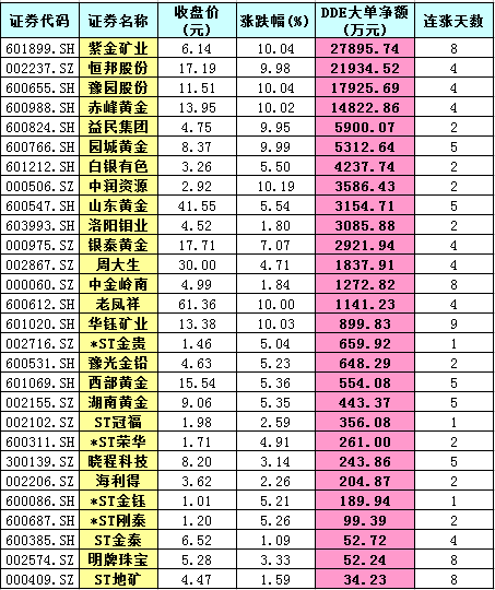 表:部分黃金股7月9日市場表現(xiàn)