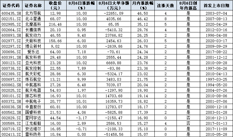 爆款頻出的軍工板塊,形成滾雪球效應(yīng)。8月6日,在滬深兩市股指震蕩盤整之際,軍工板塊大面積走強(qiáng)整體漲幅超過4%,60只成份股實(shí)現(xiàn)不同程度的上漲,占比超八成,其中,12只軍工股攜手漲停。不僅如此,33只軍工股股價(jià)創(chuàng)年內(nèi)新高,盡顯強(qiáng)勢。