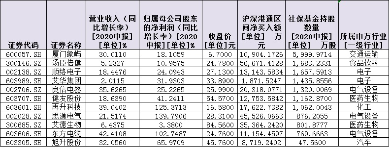 靚麗的業(yè)績無疑會受到機構(gòu)的青睞。秉承長期投資、價值投資理念的社?;鸪謧}一直以來備受各方關(guān)注。在上述116家業(yè)績雙增長的公司中,截至今年上半年,包括順絡(luò)電子、湯臣倍健、利爾化學(xué)、廈門象嶼等在內(nèi)的29家公司的前十大流通股股東名單中均有社?;瓞F(xiàn)身,合計持股數(shù)量達25448.9萬股。