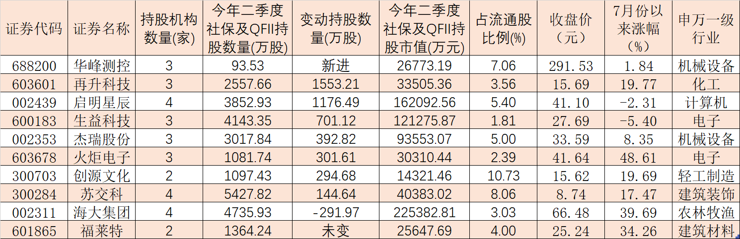 表:今年二季度獲社?;鹋cQFII共同持倉(cāng)的個(gè)股