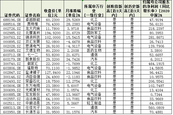 表:22只股價(jià)創(chuàng)出歷史新高的業(yè)績(jī)?cè)鲩L(zhǎng)股情況