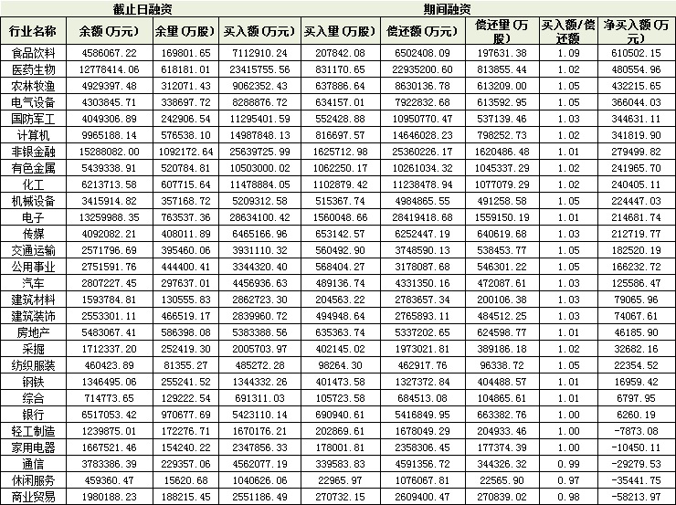 表:8月份以來申萬一級28個(gè)行業(yè)融資情況: