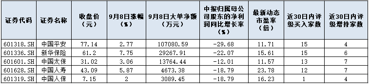 9月8日,保險板塊以4.33%的漲幅躍居大智慧行業(yè)漲幅榜首位,一掃此前陰霾,其中,新華保險大漲7.75%,中國人壽緊隨其后,漲幅為5.87%,此外,中國太保漲幅也在3%以上,達到3.06%。“是時候重估保險股”的呼聲再次響起。