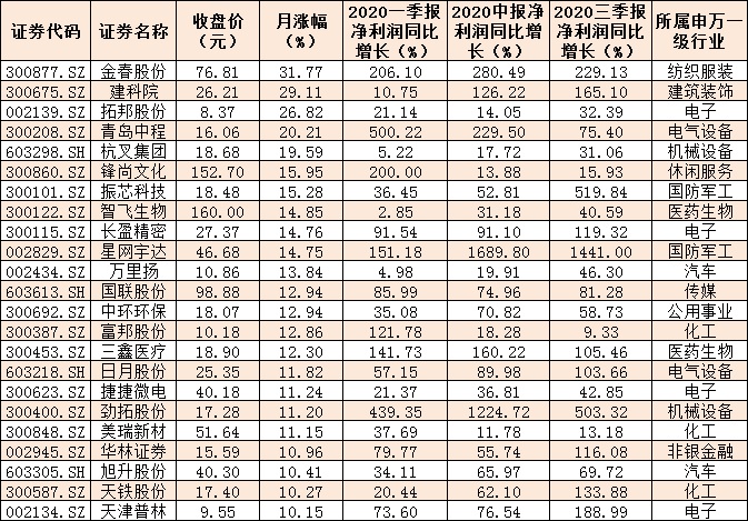 表:10月以來累計漲幅超10%的三連增股情況: