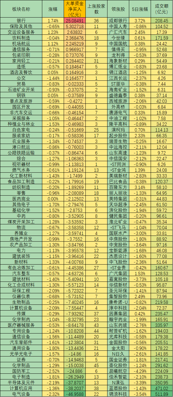 表:10月21日各同花順行業(yè)市場表現(xiàn)一覽