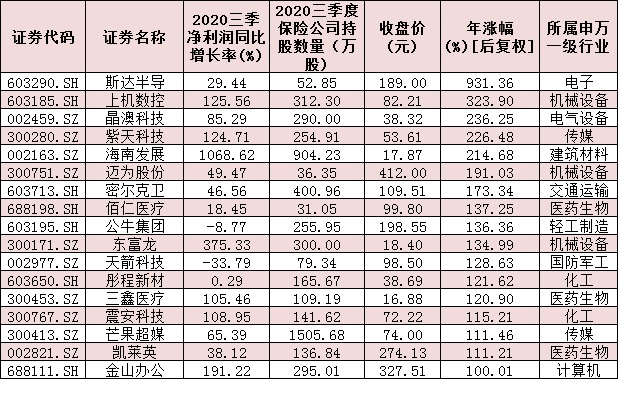表:今年以來(lái)漲幅超100%的險(xiǎn)資新進(jìn)增持股情況: