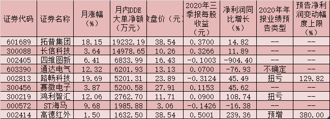 記者進(jìn)一步統(tǒng)計(jì)發(fā)現(xiàn),12月份以來(lái),板塊內(nèi)共有14只概念股備受大單資金的青睞,拓普集團(tuán)、長(zhǎng)信科技、四維圖新、通達(dá)電氣、路暢科技、賽微電子、鴻利智匯、ST海馬、高德紅外等9只概念股期間累計(jì)大單資金凈流入均在1000萬(wàn)元以上,合計(jì)吸金6.40億元。