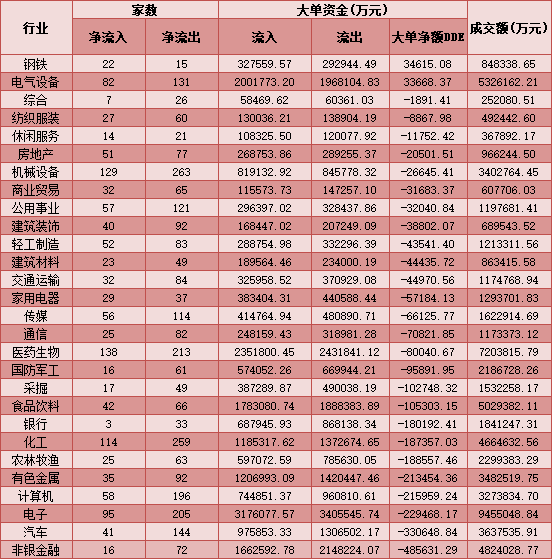 二、周四(12月10日)申萬一級行業(yè)大單資金流向