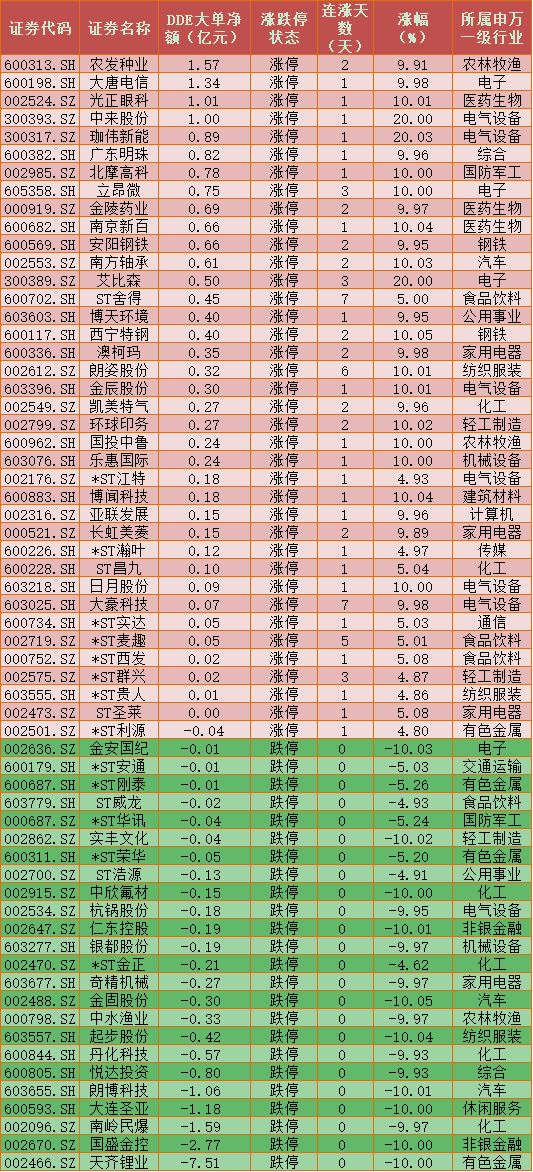 一、周四(12月10日)DDE大單資金凈買入TOP20