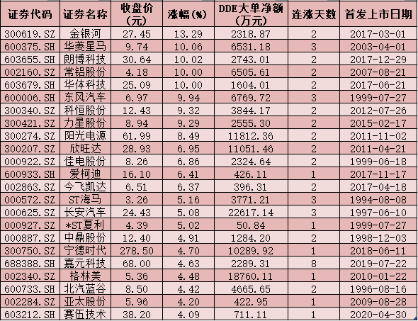 表:12月15日漲幅在4%以上的新能源汽車概念股一覽