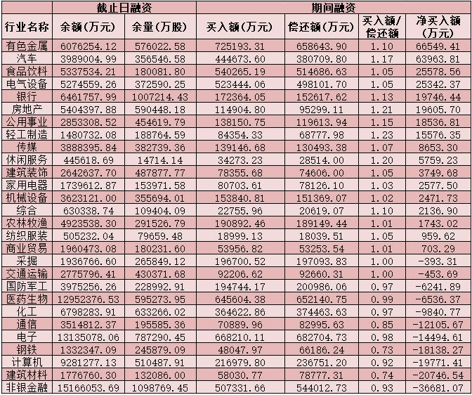 六、截至12月18申萬級一級行業(yè)兩融交易情況