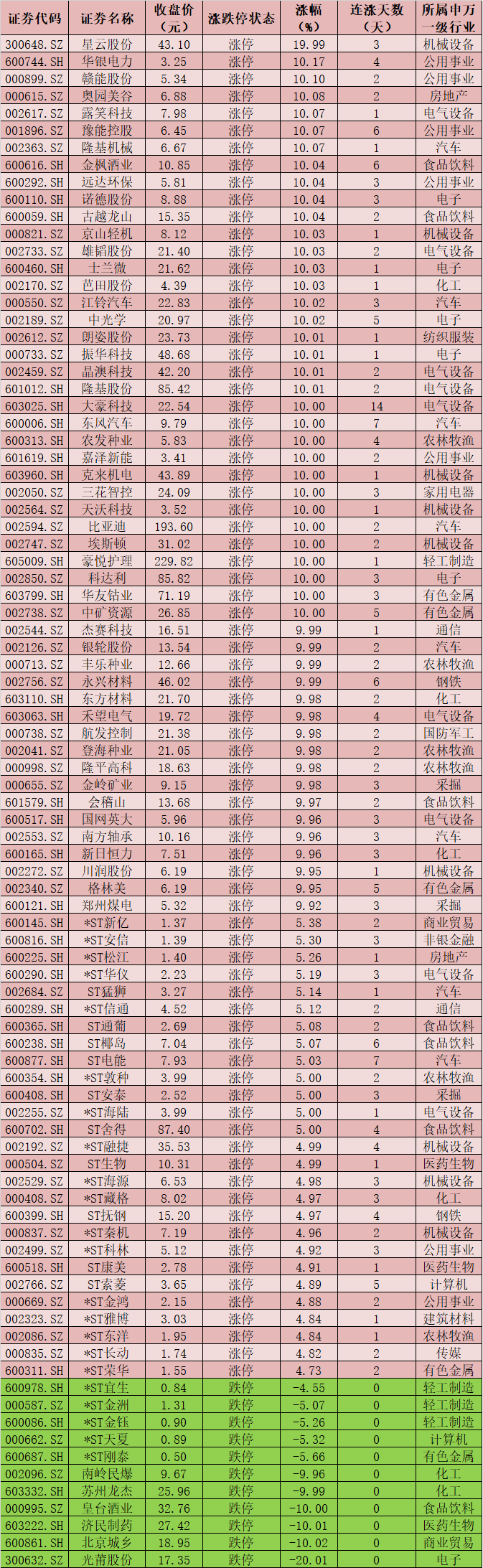 板塊方面,申萬一級28個行業(yè)中,電氣設備行業(yè)指數(shù)以5.83%的漲幅位居首位,緊隨其后的是,國防軍工、汽車和休閑服務等三行業(yè),漲幅均逾3%,分別為3.51%、3.41%和3.21%。