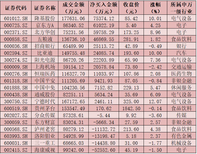四、周一(12月21日)滬、深股通前十大成交活躍股交易情況