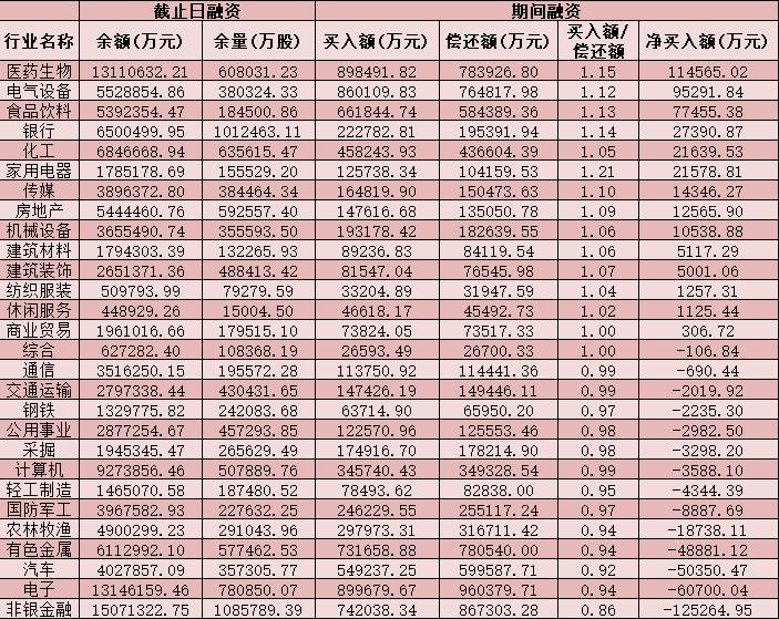 六、截至12月22日申萬(wàn)級(jí)一級(jí)行業(yè)兩融交易情況