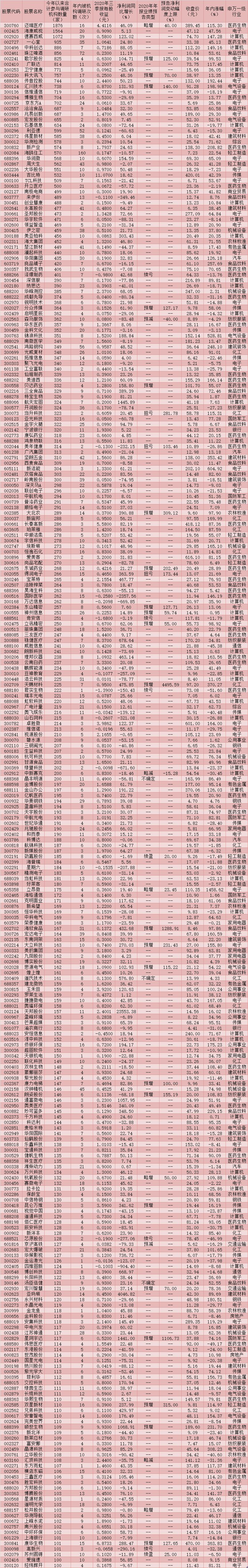 表:2020年以來(lái)機(jī)構(gòu)調(diào)研數(shù)量超過100家的個(gè)股一覽