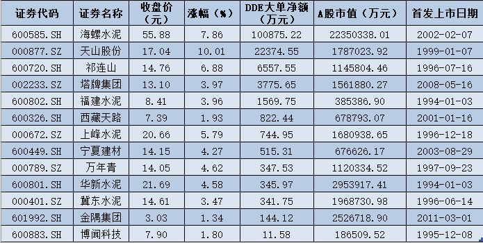 而這一觀點(diǎn)也得到了數(shù)據(jù)的佐證。《證券日報(bào)》記者根據(jù)同花順數(shù)據(jù)統(tǒng)計(jì)發(fā)現(xiàn),1月6日,共有13只水泥股呈現(xiàn)大單資金凈流入態(tài)勢,合計(jì)大單資金凈流入13.84億元。其中,海螺水泥、天山股份、祁連山、塔牌集團(tuán)、福建水泥等5只個(gè)股大單資金凈流入均在1000萬元以上,分別為100875.22萬元、22374.55萬元、6557.55萬元、3775.65萬元、1569.75萬元。