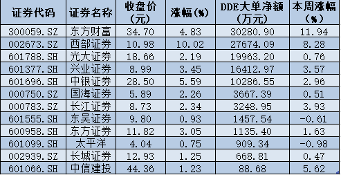 表:1月7日大單資金凈流入的券商股一覽