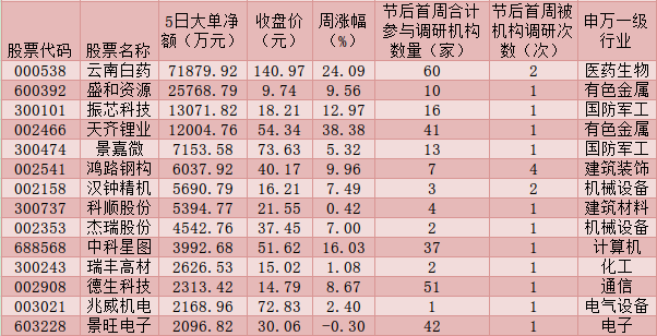 表:本周獲超2000萬元以上大單資金搶籌的機構(gòu)調(diào)研股