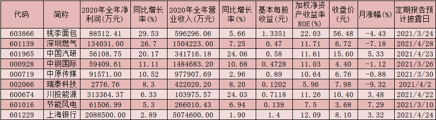 從凈利潤(rùn)同比增幅來(lái)看,上述9家公司中,桃李面包凈利潤(rùn)同比增長(zhǎng)居首,達(dá)到29.53%,而深圳燃?xì)猓?6.7%)、中國(guó)汽研(20.17%)、中鋼國(guó)際(11.11%)和中原傳媒(10.52%)等公司2020年全年凈利潤(rùn)都同比增長(zhǎng)也均在10%以上。
