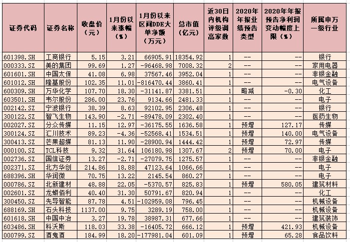 表:近30日內(nèi)獲機(jī)構(gòu)調(diào)高評(píng)級(jí)且總市值超600億元個(gè)股一覽