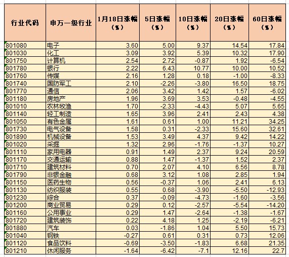 表:申萬一級行業(yè)指數(shù)近期漲幅一覽