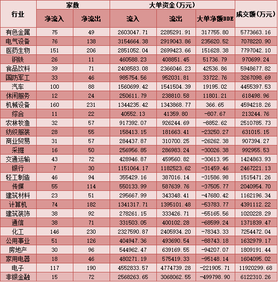 從資金層面看,市場大單資金呈凈流出態(tài)勢,周三,整個市場資金凈流出金額達63.88億元。行業(yè)方面,有9類行業(yè)呈凈流入態(tài)勢,資金流入最高的有色金屬凈流入額達31.78億元。