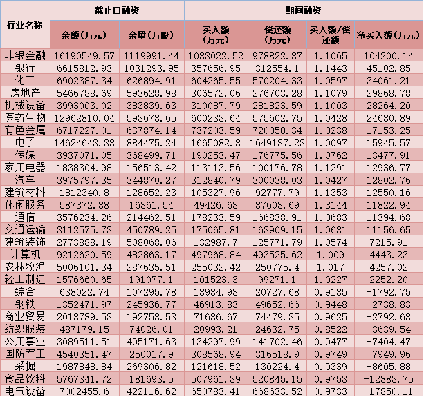 六、截至1月19日申萬一級行業(yè)兩融交易情況