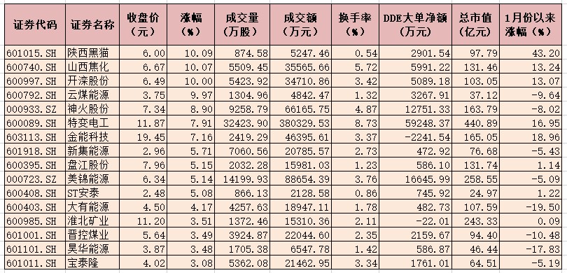 隨著煤炭價格的上漲,煤炭股也迎來上漲行情,1月21日,煤炭板塊全天漲幅居前,截至收盤,板塊整體漲3.29%,其中,陜西黑貓漲勢強勁,創(chuàng)下5連板漲停,山西焦化、開灤股份、云煤能源和ST安泰集體漲停,神火股份、特變電工、金能科技等3只個股漲幅均超7%。