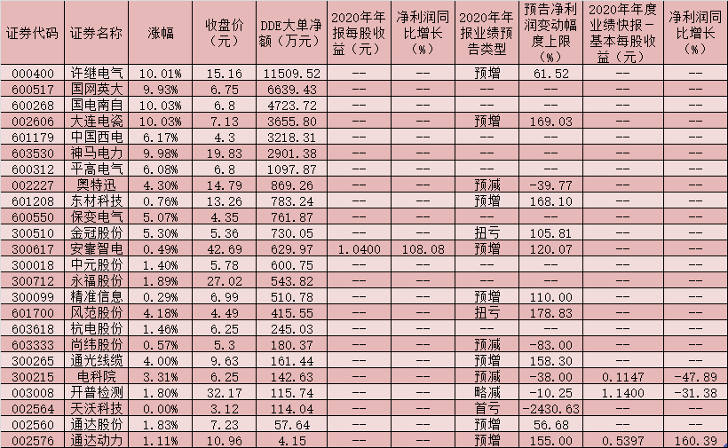 可以看到,年報(bào)業(yè)績(jī)預(yù)期向好也支持著特高壓概念股的良好表現(xiàn)。統(tǒng)計(jì)顯示,截至3月2日收盤,安靠智電已披露了2020年年報(bào)業(yè)績(jī),該公司報(bào)告期內(nèi)實(shí)現(xiàn)凈利潤(rùn)同比增長(zhǎng)108.08%。同時(shí),有9家公司披露了2020年年度業(yè)績(jī)快報(bào),報(bào)告期內(nèi)實(shí)現(xiàn)凈利潤(rùn)同比增長(zhǎng)的公司共有6家,按去年凈利潤(rùn)同比增幅排序分別為:通達(dá)動(dòng)力(160.39%)、思源電氣(69.09%)、長(zhǎng)高集團(tuán)(40.88%)、漢纜股份(40.59%)、金杯電工(28.85%)和川潤(rùn)股份(0.85%)。