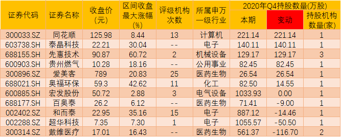表:已披露年報(bào)公司2020年第四季度末QFII持倉動向一覽