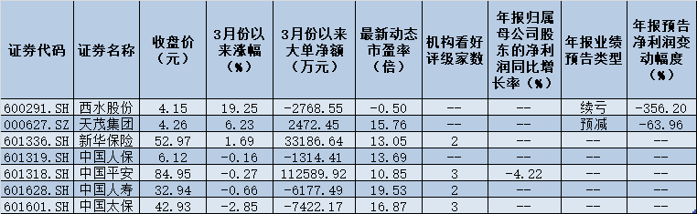雖然目前保險行業(yè)業(yè)績尚未完全拉開面紗,但相關上市公司股價表現(xiàn)已嶄露頭角。3月份以來,保險股悉數(shù)跑贏大盤,其中,西水股份、天茂集團、新華保險等3只個股更是逆市上漲,期間累計漲幅分別為19.25%、6.23%、1.69%。