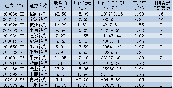 表:機(jī)構(gòu)推薦的銀行股市場(chǎng)表現(xiàn)一覽