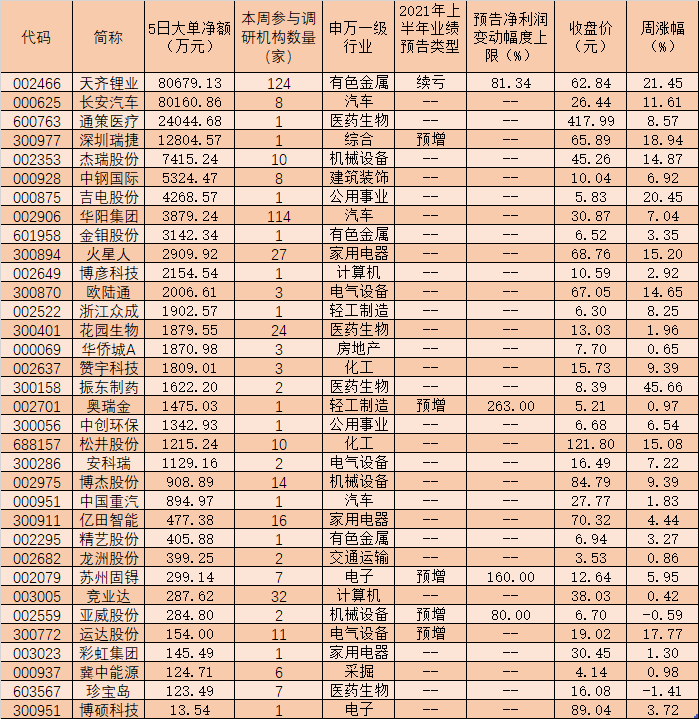 表:上周獲大單資金青睞的機構調(diào)研股