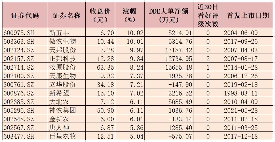最近30日內(nèi),也有券商機構(gòu)對于豬肉概念股表示看好,具體來看,有7只概念股獲機構(gòu)給予“買入”或“增持”等看好評級,其中,正邦科技和海大集團獲得看好評級次數(shù)均為2次,華統(tǒng)股份、牧原股份、順鑫農(nóng)業(yè)、湘佳股份、溫氏股份等5只個股看好評級次數(shù)均為1次。