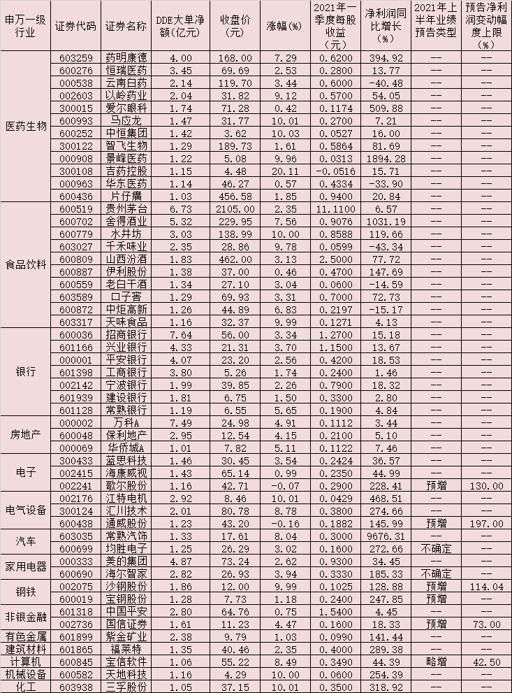 表:7月1日獲超1億元大單資金搶籌的個(gè)股