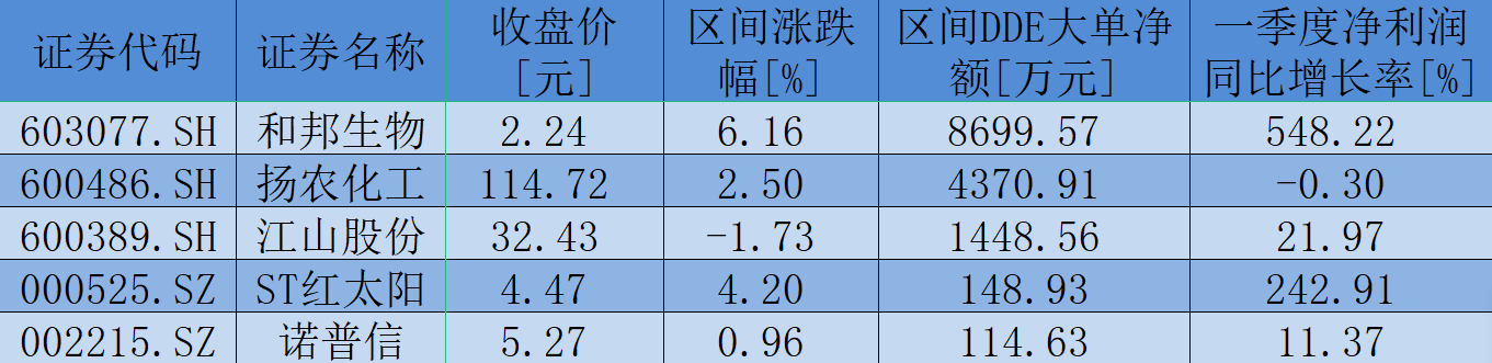 表:7月12日至7月15日,草甘膦板塊獲大單資金凈買入個(gè)股一覽
