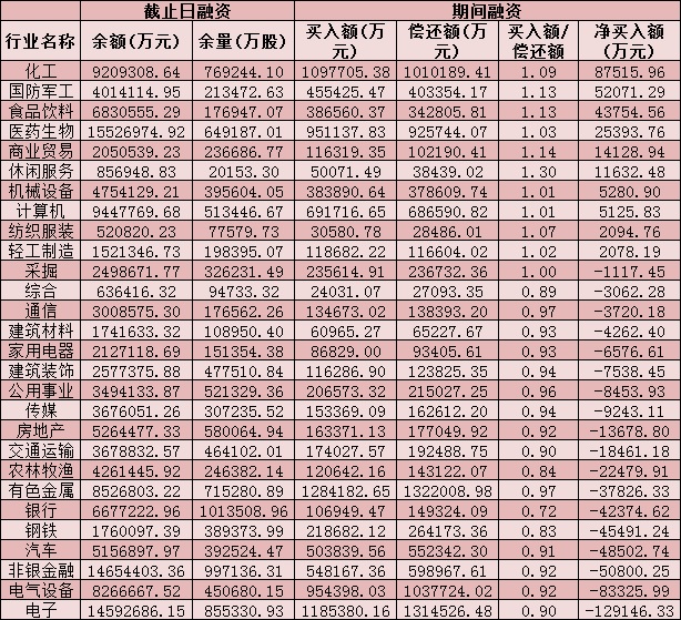 六、截至7月16日申萬一級(jí)行業(yè)兩融交易情況