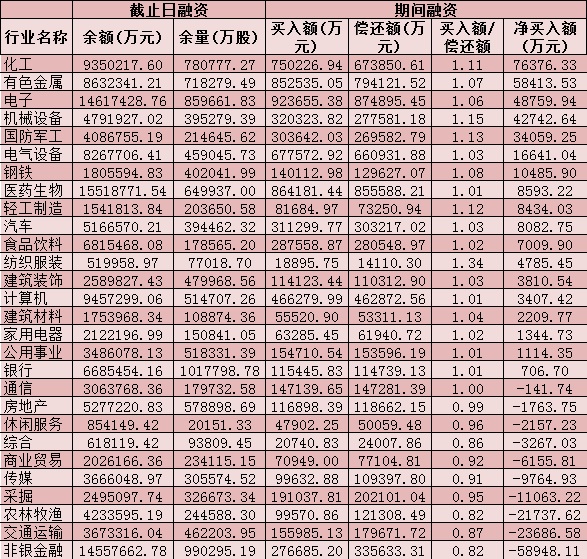 六、截至7月20日申萬(wàn)一級(jí)行業(yè)兩融交易情況