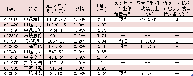 表:7月22日實(shí)現(xiàn)大單資金凈流入的航運(yùn)概念股