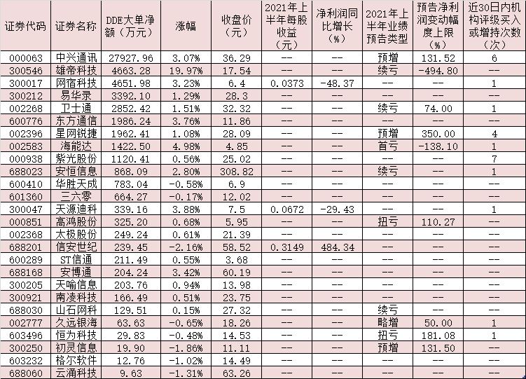 表:8月19日獲大單資金凈流入的網(wǎng)絡(luò)安全概念股